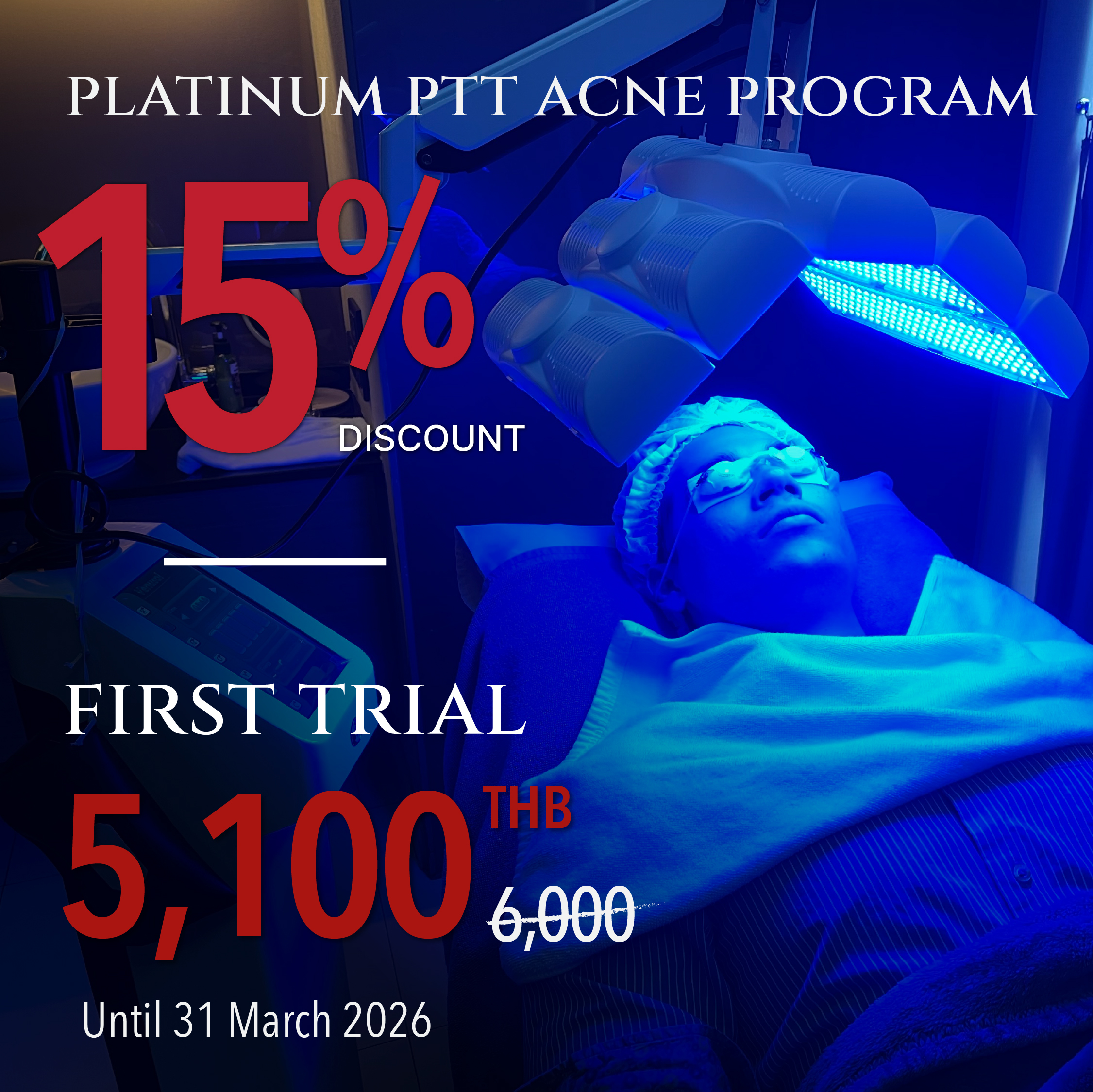 นวัตกรรม Platinum PTT + Blue Light ล้ำหน้าด้วยการหยุดการทำงานของต่อมไขมันที่ผลิตน้ำมันมากเกินไป คืนความมั่นใจขั้นสุด โดยไม่ต้องพักฟื้น (Zero downtime)